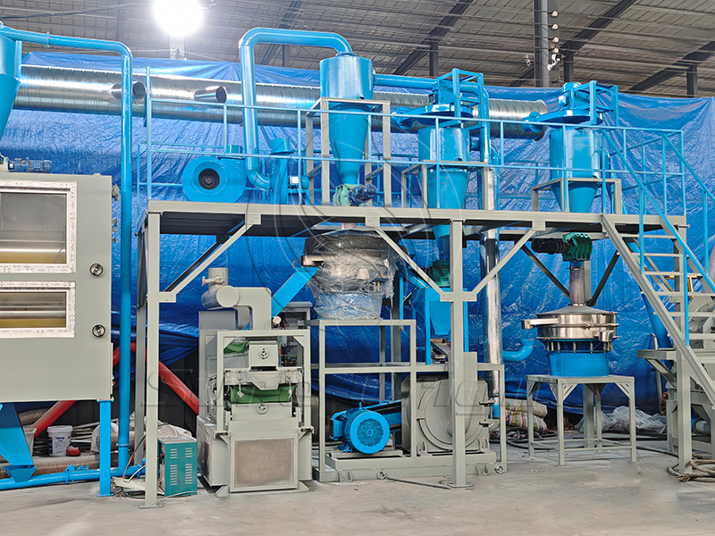 During the separation stage, the production line generally integrates equipment such as vibrating screens, air gravity separators, and high-voltage electrostatic separators. The screening system classifies materials according to particle size and allows the recovery of different grades of glass and silicon powder. Air gravity separation equipment separates metals from lighter materials based on density differences. Finally, high-voltage electrostatic separation further separates silicon powder and plastic materials according to their electrical conductivity characteristics, improving the purity of the recovered materials.