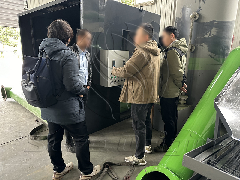 During the factory visit, the client paid more attention to practical details — structure, materials, safety design, and operation logic. We showed them how our medical waste recycling machine is designed with a fully closed system to avoid leakage and ensure operator safety. They were especially concerned about the sterilization process, so our engineer explained the working principle step by step.