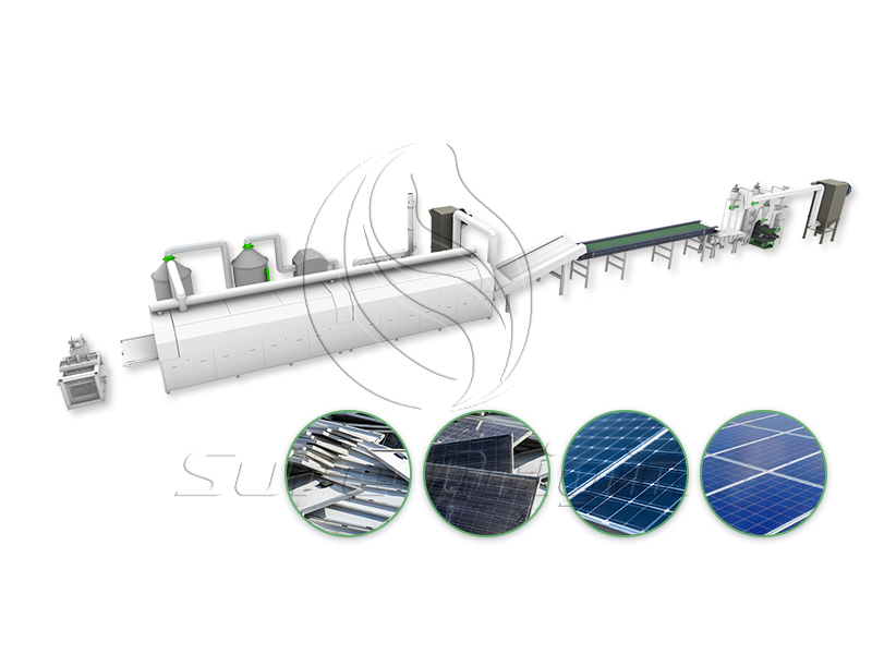 The Solar PV Panel Recycling Machine works together with the Frame Removal Machine, Glass Removal Machine, and Solar PV Panel Dismantling Machine to efficiently separate aluminum frames, glass, copper, silicon powder, silver, and plastic from photovoltaic modules, while the pyrolysis furnace and tunnel furnace further support clean and effective material processing.